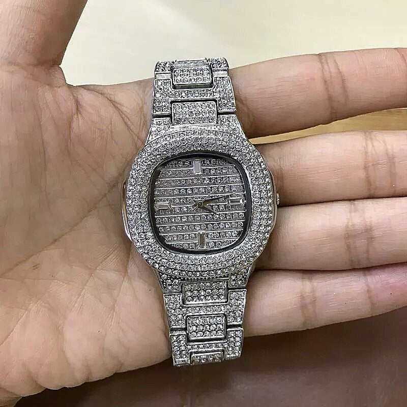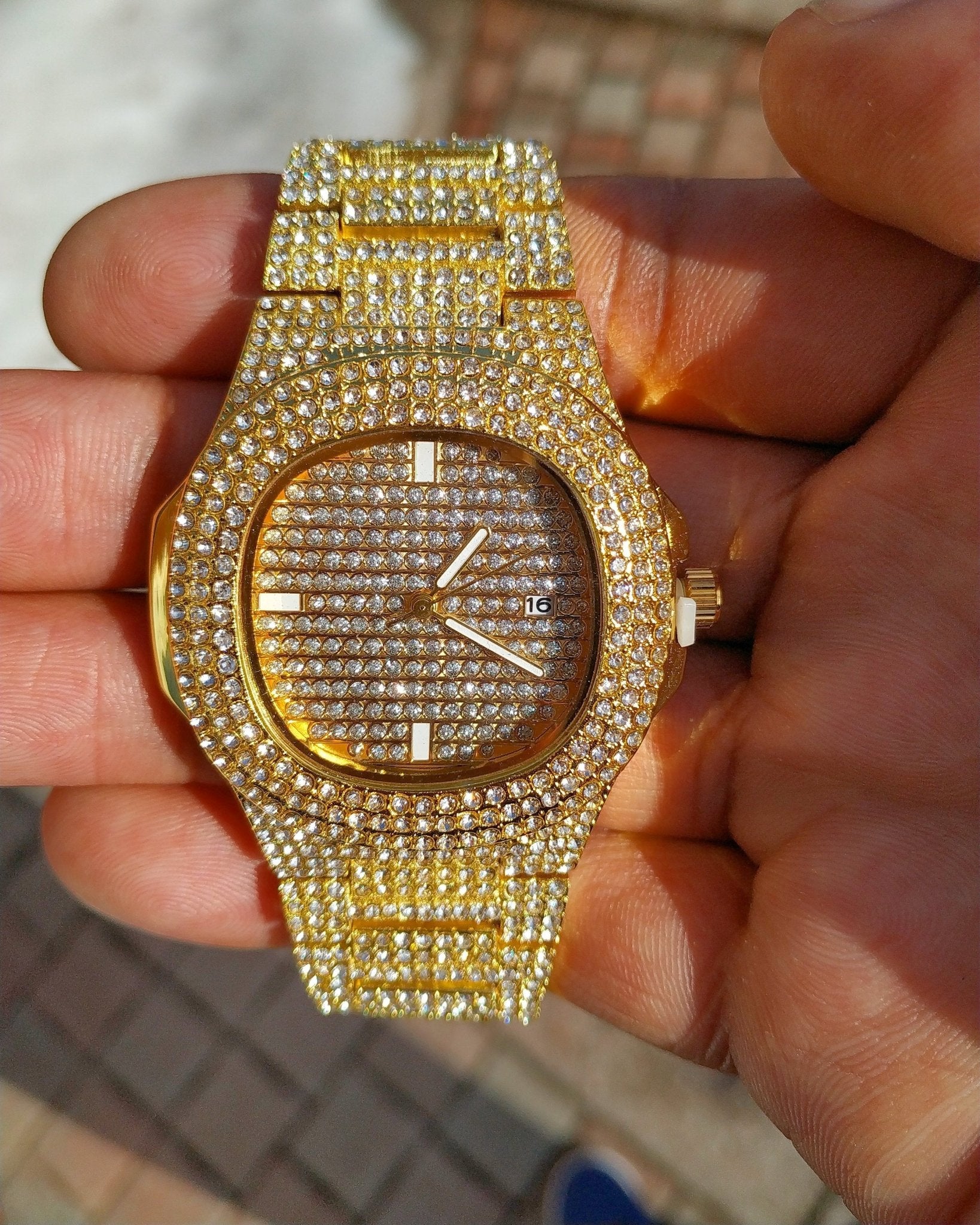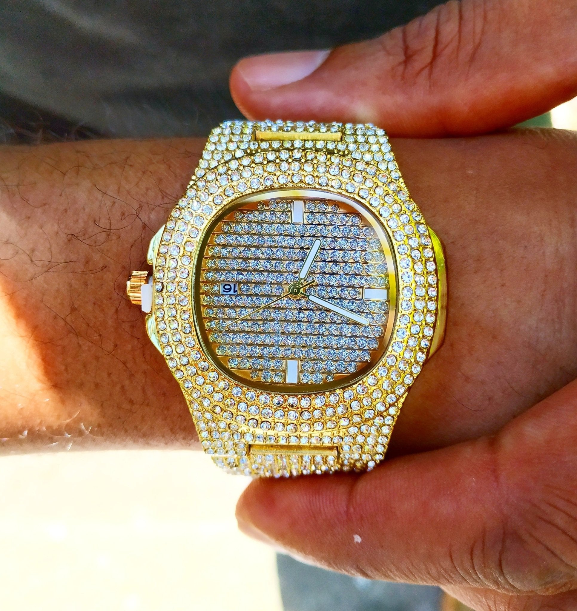 The Drip Watch is made from high quality 18k Gold Plating and then its absolutely flooded with stunning CZ Diamonds